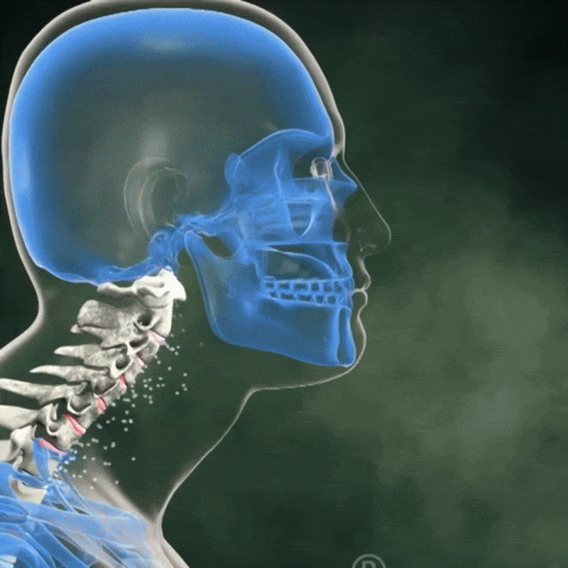 This animation reveals how your neck is compressed over the years and how gentle traction decompresses your spine and melts away pressure in minutes.